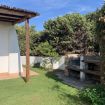 L’arredamento esterno della terrazza coperta è elegante e comodo, arredato con un tavolo in marmo per 8 persone, salotto con poltrone e sdraio ed un barbecue in granito.
